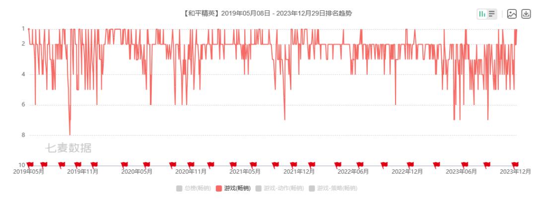 上線4年,如今《和平精英》仍舊保持在品類頭部位置。根據七麥數據,截至12月29日,《和平精英》手遊共上線1697天,其中有1462天位於暢銷榜前三名,佔比86%,而且,它從未跌出過暢銷榜前十。這應該就是它保持生命力的最好佐證。