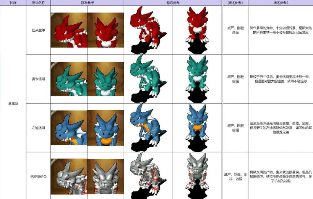 爲此,我們也找了很多資料,比如說一些遠古生物的書籍等等,來分析原作的設計思路。我們目前遊戲中的寵物,幾乎全是IP繼承的。如果不按原作的設計思路來,哪怕畫風跟原IP完全一樣,你還是會感覺違和。
