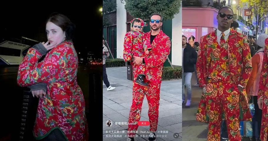 秉承打不過就加入的原則,“東北大花襖”的受衆已經跨越了國籍。在抖快小紅書略微搜索,你就能看到身穿花棉襖的東洋西洋南洋北洋人們,揮灑出比doinb和伏拉夫還純正的中國風味。