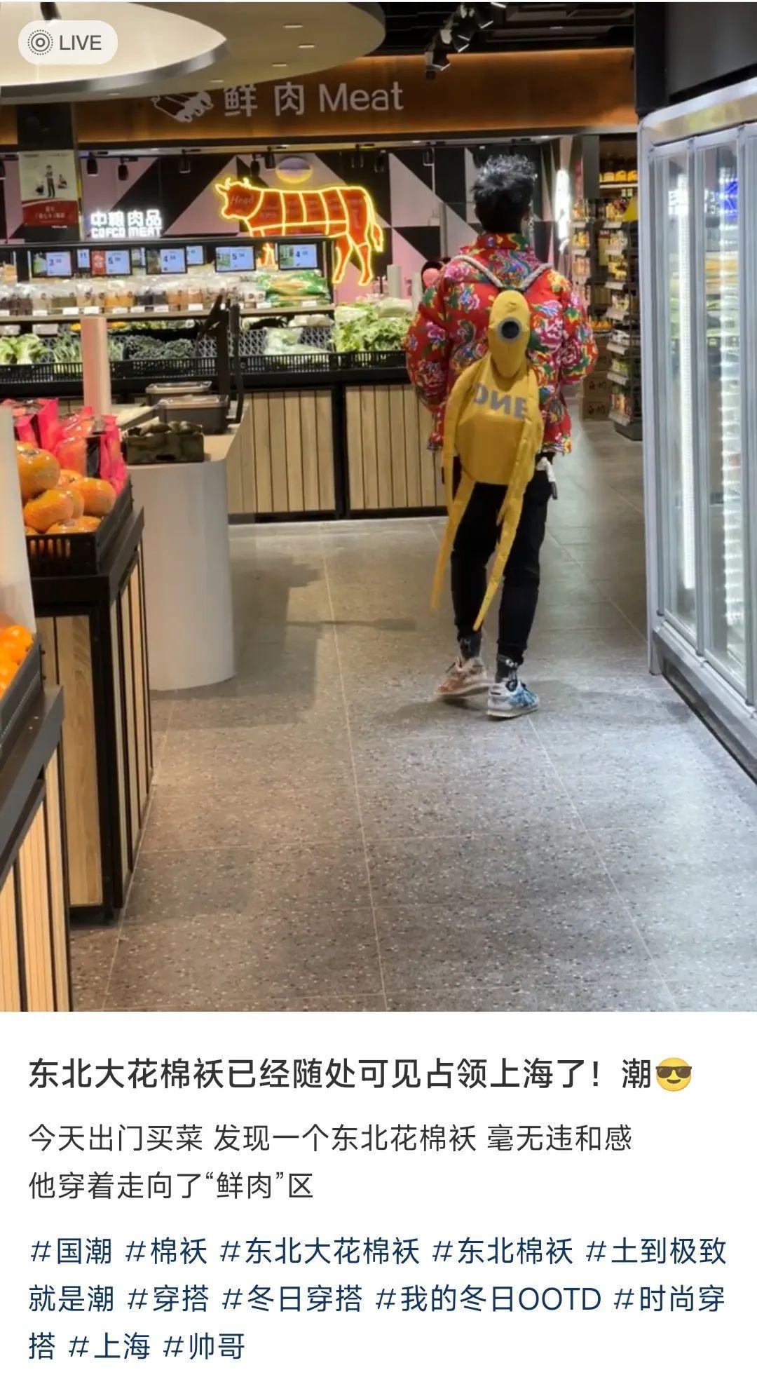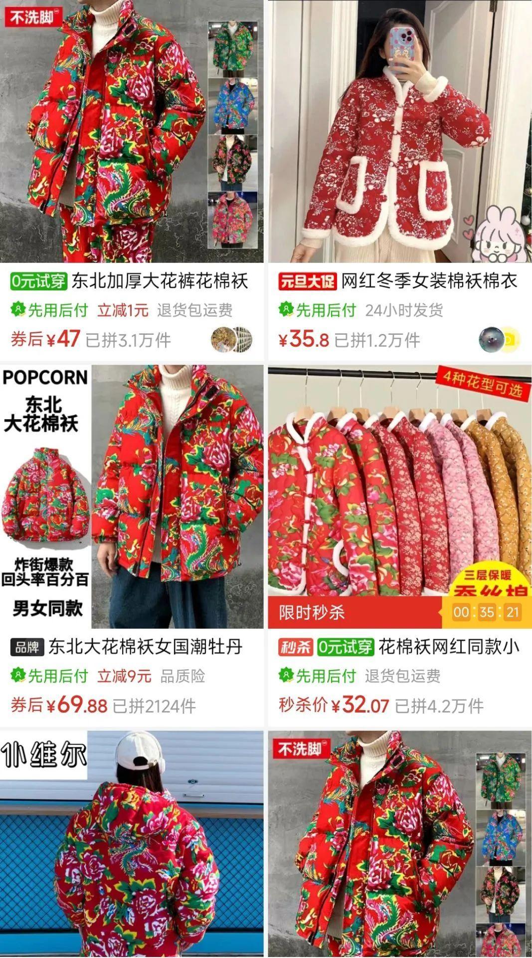 於是你會發現反直覺的現象,我們印象中屬於“老頭樂”的花棉襖,如今不管是商家用於展示的模特;
