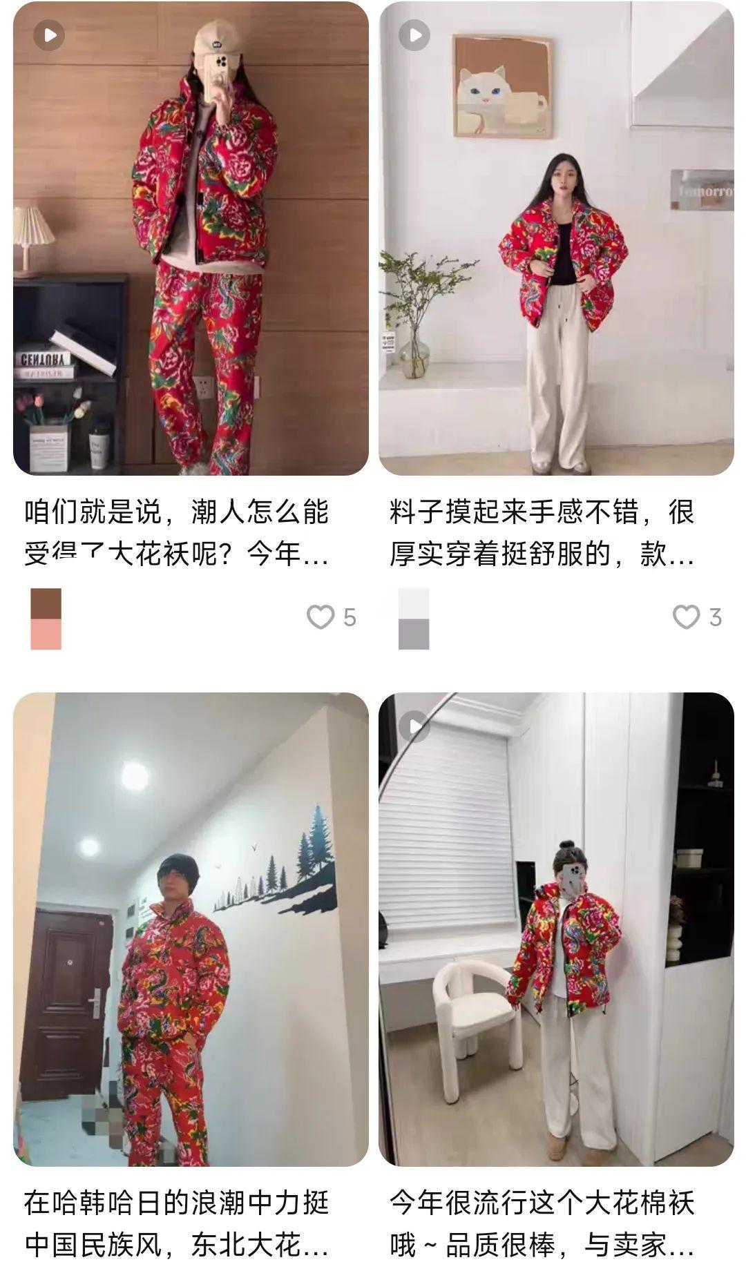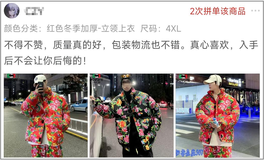 當然,有多少是看了抖音快手後跟風圖一樂的,我們就不得而知了。但你確實能從海量的買家秀看出,年輕人從花棉襖那裏得到的樂趣,哪怕只有一瞬間,也確實是真的。