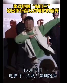 同樣,在《三大隊》的路演現場,也有觀衆向演員張譯提出了現場表演“科目三”的請求,但這一次,有人選擇了拒絕。