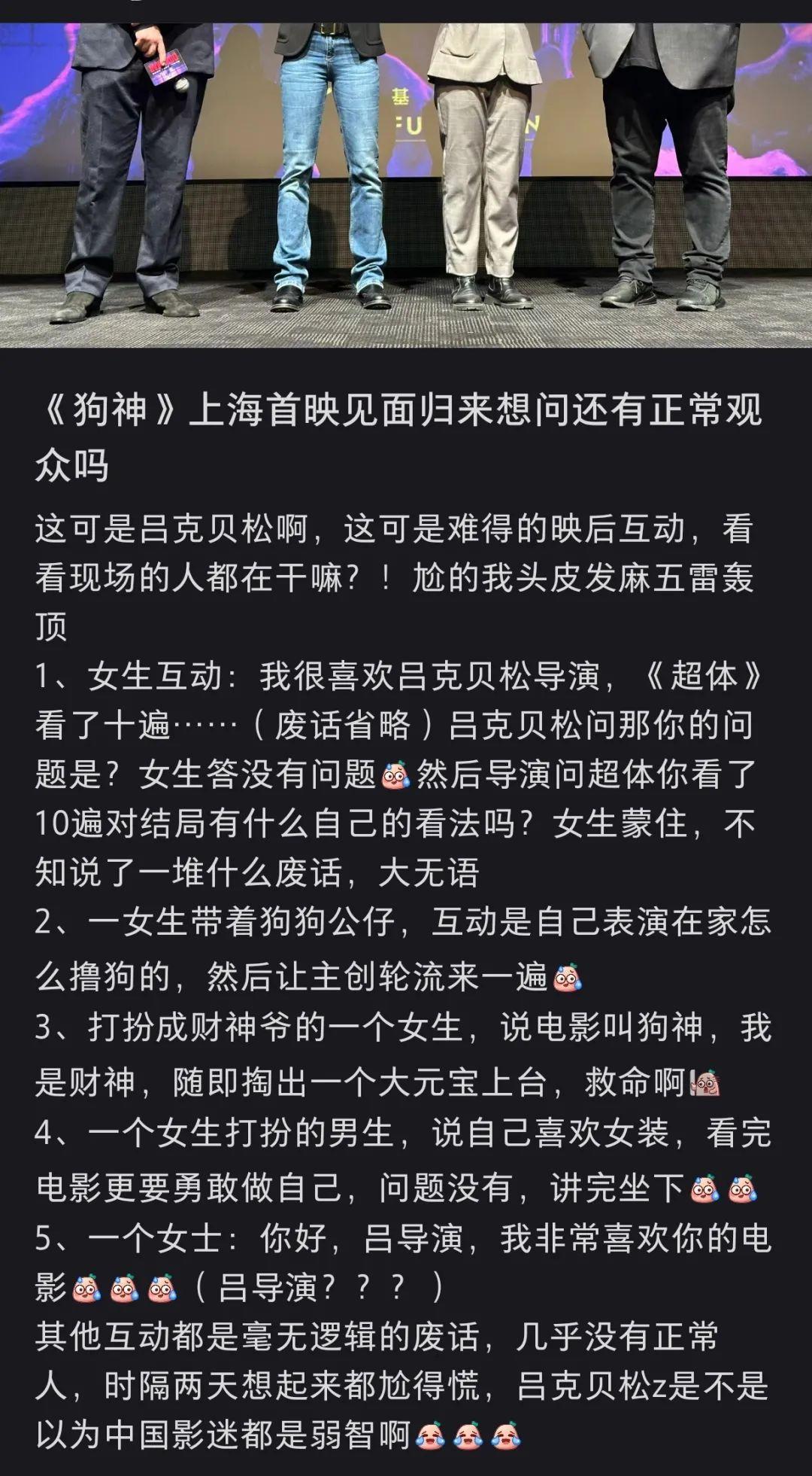 這類情況並不是個例,應該說,當下國內售價均超過百元的主創路演場次裏,幾乎每一場都變成了討好觀衆或乾脆就是觀衆的秀場。