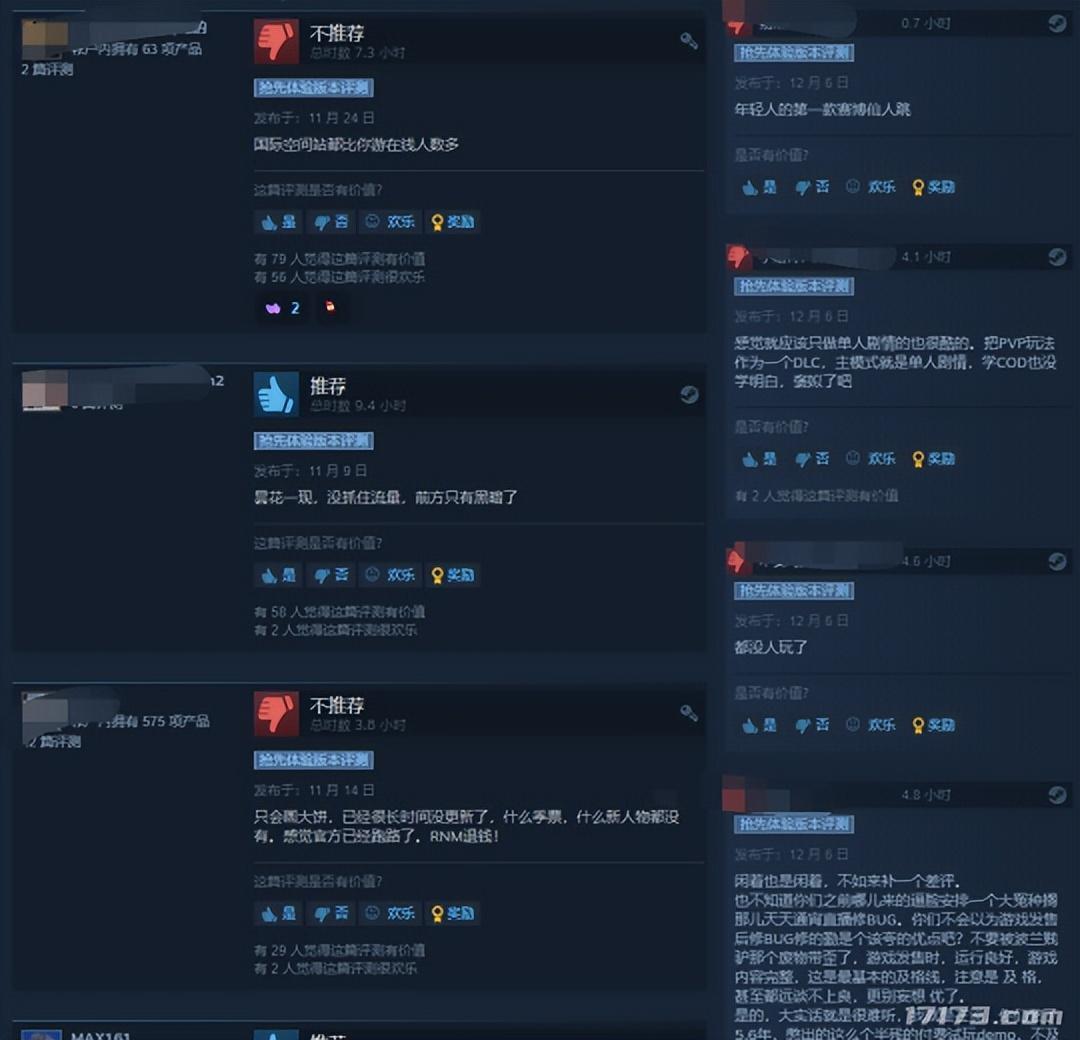 不過通過Steam平臺的評價來看,在最近30日的評價中游戲的口味有所回暖,獲得了78%好評率的多半好評。