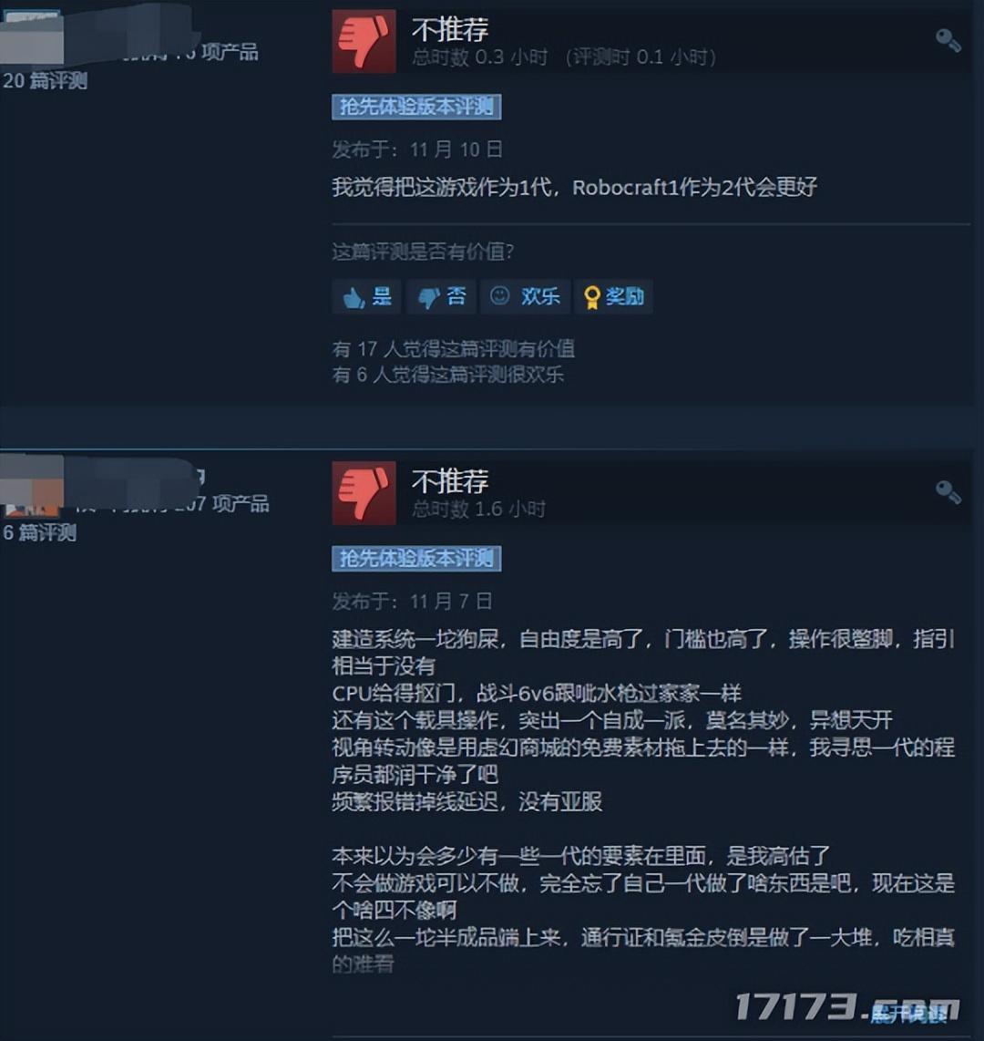 雖然遊戲在玩法上,相比於一代遊戲有了不錯的突破。不過在具體的細節上卻讓不少玩家失望。遊戲優化差勁,畫面卡頓。建造系統操作蹩腳,並且新手引導也不夠完善。問題更嚴重的則是,主打多人對戰的遊戲卻無法正常匹配。因此也有不少玩家表示,這個遊戲纔是1代,1代《羅博造造》作2代遊戲才更好。