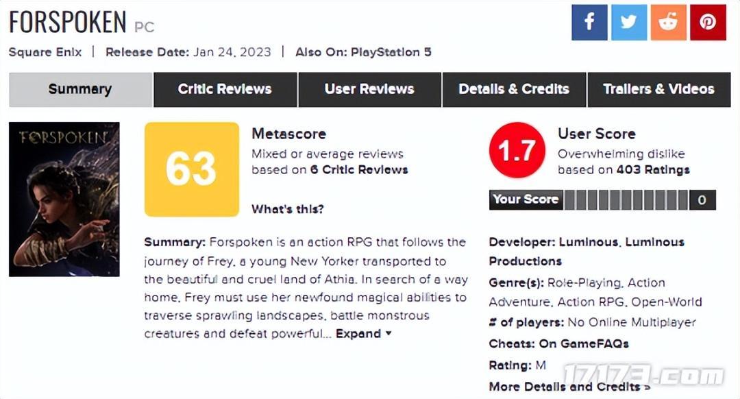 遊戲發售時在M站的評分,媒體分也纔剛剛63及格,玩家分更是低到了1.7。哪怕如今距離遊戲發售已經過去差不多11個月,遊戲的玩家評分也纔回暖到3.8分。