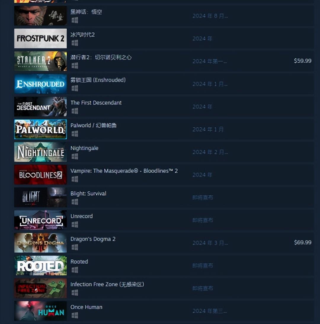 目前,《七日世界》在Steam最熱願望單產品中位列全球前20,在國產遊戲分類中也僅次於《黑神話:悟空》。