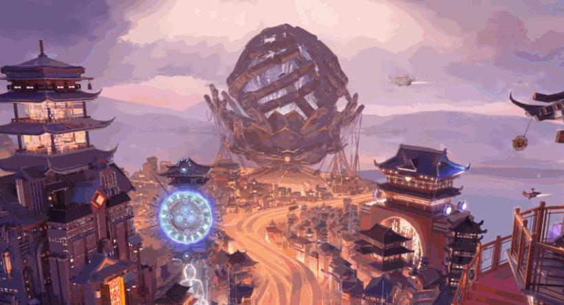 同時也會出現金色的齒輪、飛艇、霓虹燈光等賽博工業造物,整一個就是中西、古今貫通。
