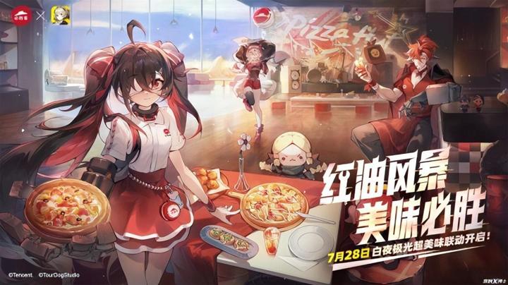 當然,國服也並非是只有國風內容,《白夜極光》在IP聯動上也絲毫不示弱。例如遊戲在去年暑期開展的必勝客線下聯動套餐,也是在國內二遊市場中十分常見的線下聯動營銷活動了。
