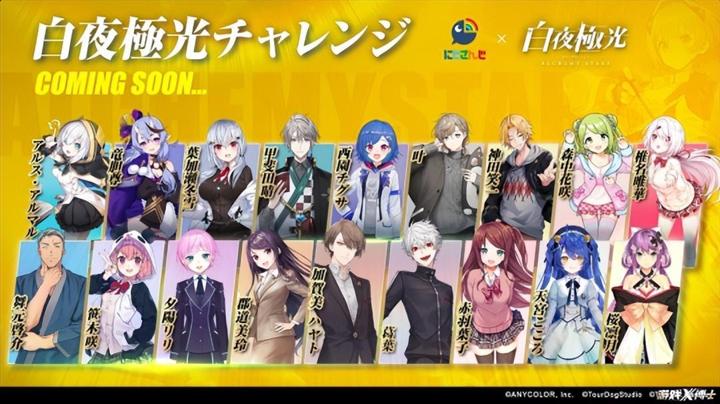 一方面《白夜極光》在線上與日本的頭部Vtuber公司包括彩虹社等進行了整體的品牌聯名活動。邀請了18名虛擬主播進行了爲期一個星期的大型主播接力活動。這場活動影響力不僅覆蓋了日韓市場,甚至在歐美二次元圈也引發了轟動。