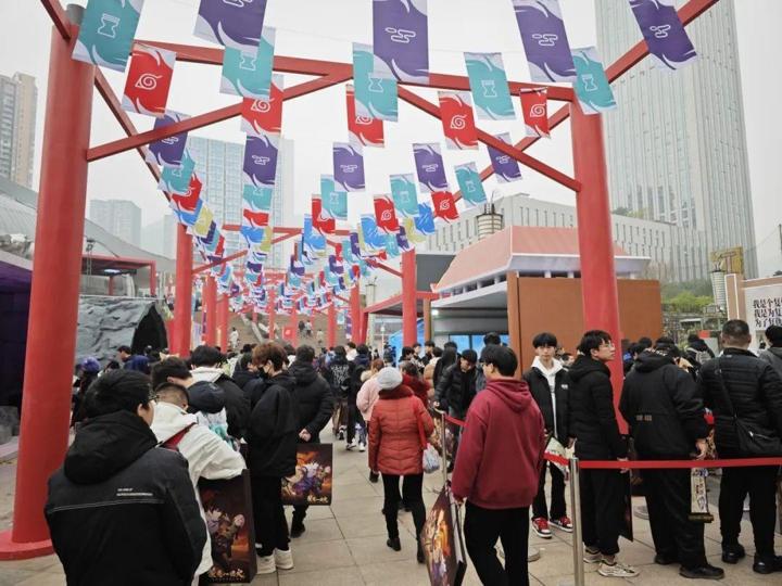 我是來看《火影忍者》手遊8週年重燃盛典暨2023年度總決賽的。本以爲,1月5日週五,工作日14點,這兒應該人會少點,畢竟每天賽程都是16點開始,結果沒想到場館外的各個活動區域,已經在排長隊了……