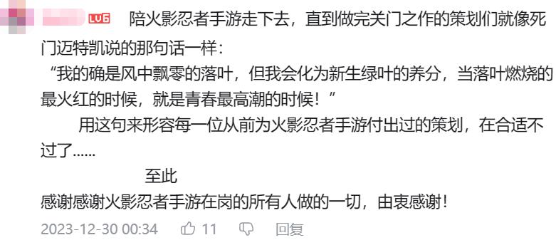 一位小哥告訴我,因爲覺得放鬆,沒有被逼着打工式玩遊戲的感覺,不管是自己玩還是看別人玩,都能單純地享受格鬥PvP的樂趣;另一位玩了5年的大哥說,自己喜歡這款遊戲裏部分角色的技能,具體來說,他最喜歡小李(《火影忍者》手遊策劃之一)做的技能設計。