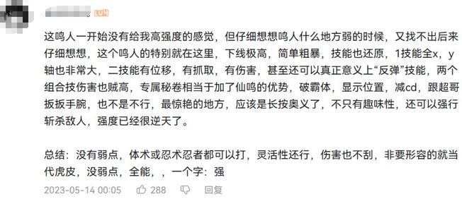 比如5月推出的九喇嘛鳴人,相比於其他角色,不僅是卷美術特效、動畫表演,其強度和操作性也有講究,普攻平A傷害可觀,秀操作的空間也較大。