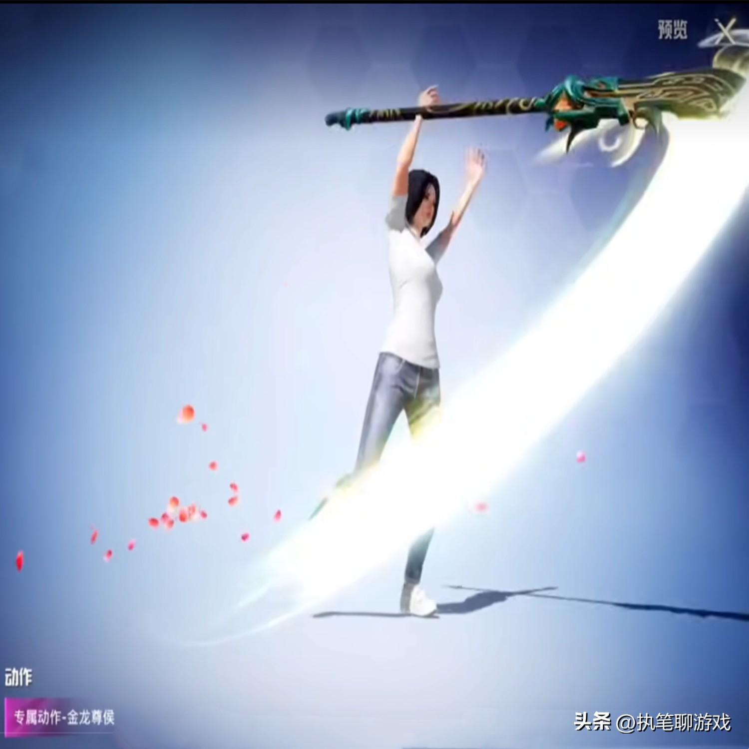 最後的第5個專屬動作被光子命名爲“金龍尊候”,看到這個動作的時候,天哥忍不住眼前一亮,因爲人物角色手中的武器實在是太眼熟了。