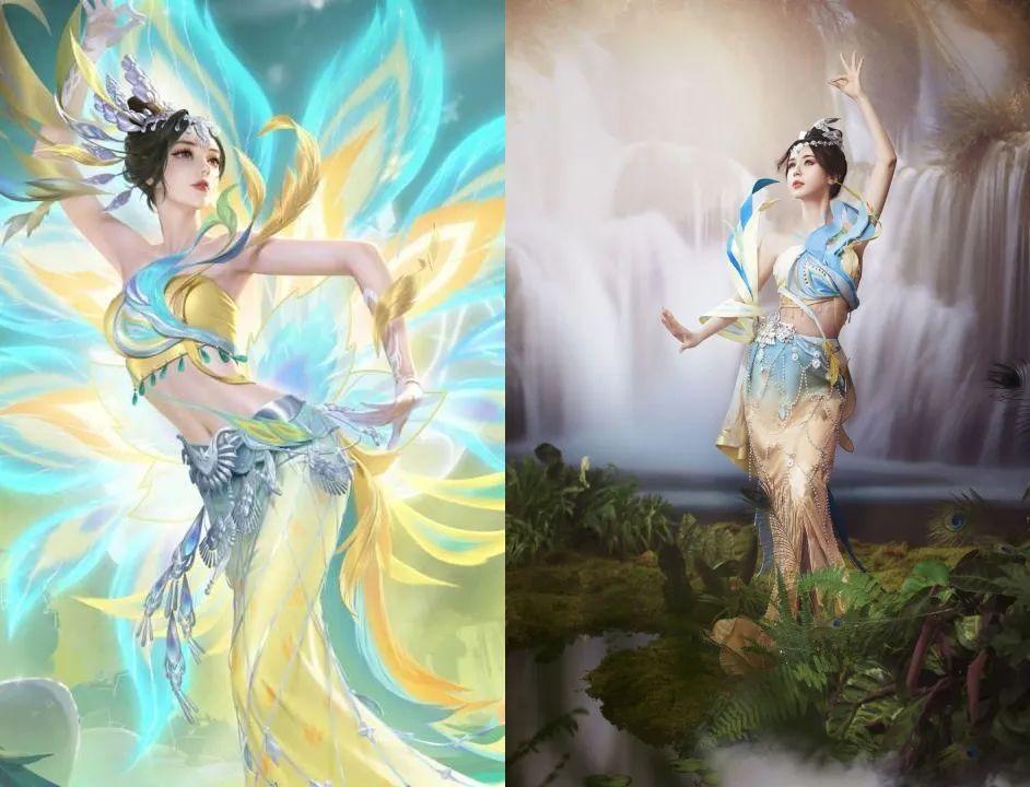 哈妮克孜的cos以一種異域的姿態還原了甄姬的孔雀造型: