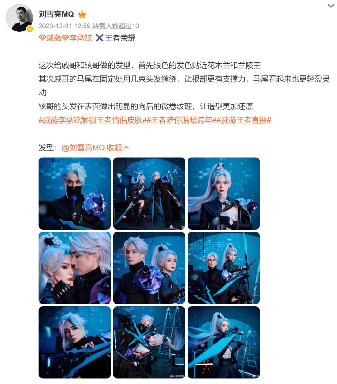 戚薇和李承鉉把CP屬性代入了合作當中,cos了花木蘭和蘭陵王,高度還原了皮膚外觀,評論區網友直呼“原畫級cos”: