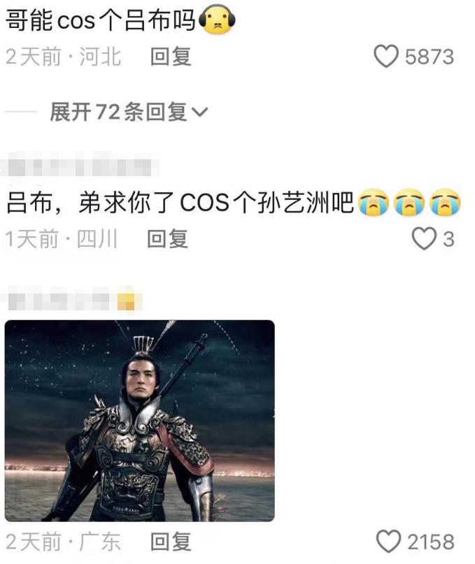 這次六位明星的cos公佈之後,遊戲玩家和明星粉絲,都給出了很正向的評價——粉絲看到自家明星有精緻的扮相覺得滿意,玩家也覺得這一批cos還原度足夠高。評論區有多位網友隔空@孫藝洲求他下次cos呂布。不少人覺得這是線上遊戲和真人明星一次“打破次元壁”的合作。