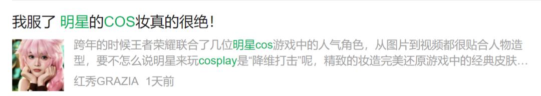 這幾位明星cos《王者榮耀》角色,來自《王者榮耀》元旦前後的一系列跨年活動,看到王者、跨年這樣的關鍵詞,你可能覺得,作爲國民遊戲,《王者榮耀》官方的活動上個熱搜稀鬆平常。國民度很高的幾位明星來cos遊戲角色,有很大的陣仗也不稀奇。