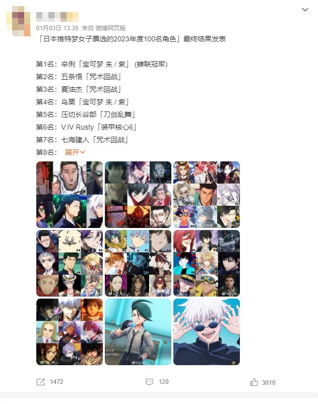 可今年她不過只在DLC中短暫露面,卻依然穩坐冠軍高位,並壓倒了《咒術回戰》的熱門選手五條悟和夏油傑,足以說明她在衆夢女心中壓倒性的地位。