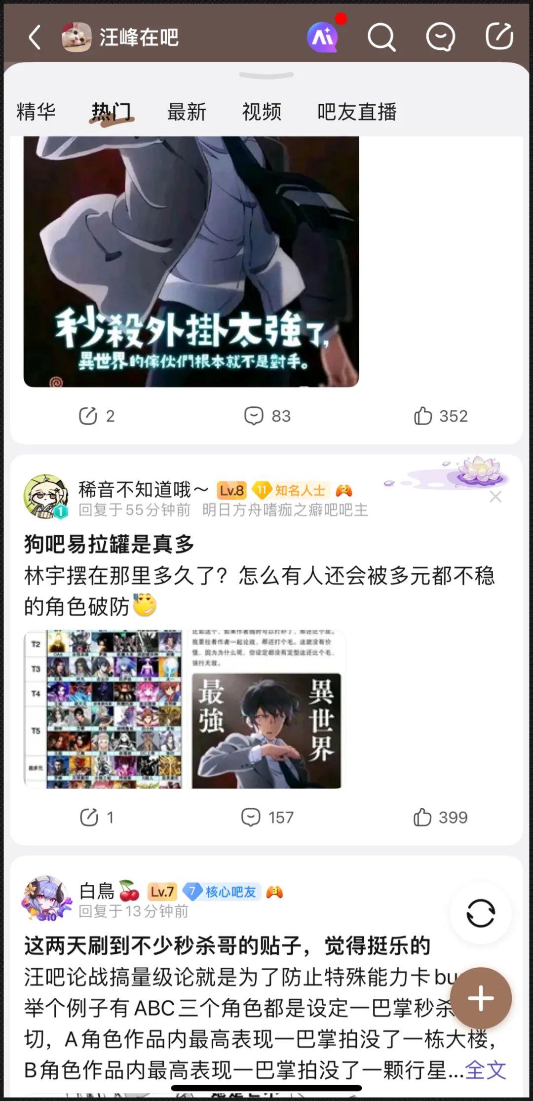 陸續出現類似《這個角色在吧裏能不能算做天花板》《怎麼樣破解秒殺掛的這個角色》的討論帖子。