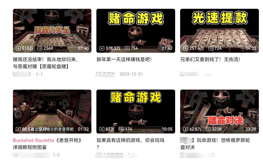 在最近的視頻排行榜上,一片黑漆漆的賭桌以“賭命”之名的封面霸佔了列表,它們都來自同一款遊戲——《Buckshot Roulette》。