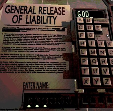 有趣的是,在輸入字符時,玩家會發現無法輸入對面發牌者(DEALER)或者是上帝(GOD)的名字,說明上帝也曾經參與過這場以性命爲賭注的輪盤遊戲,後續我們還能在道具裏見到上帝的生死狀,但很遺憾他輸了。