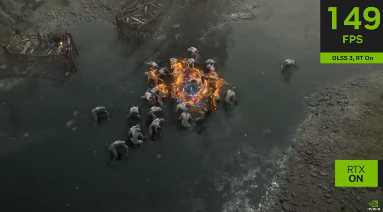 早在去年,《暗黑破壞神4》便承諾會在遊戲裏添加光追,現在終於兌現,但部分玩家認爲開啓光追會影響畫面幀數,而英偉達也展示了同時開啓光追和DLSS的遊玩畫面——幀數由不足60暴漲到150左右。