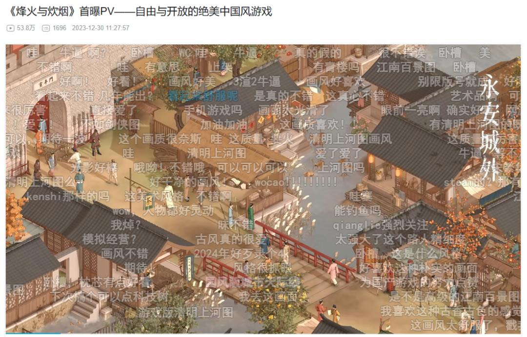 最近,一款名爲《烽火與炊煙》的國風獨立遊戲在B站上發佈了自己的首曝PV,視頻中展示的內容只能用兩個字來形容——“誇張”。