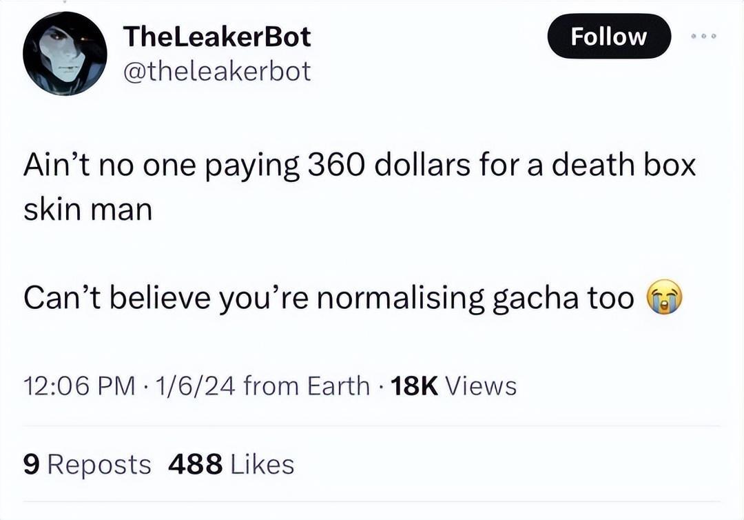 據悉,本次聯動活動推出了大約36個全新物品,玩家需要通過開寶箱的方式來獲得這些物品。在收集完所有物品後,玩家可以解鎖特別的薩菲羅斯死亡盒造型。然而,與之前活動中每個寶箱大約700金幣(約7美元)的定價相比,這次活動的寶箱售價高達1000金幣(約10美元)。