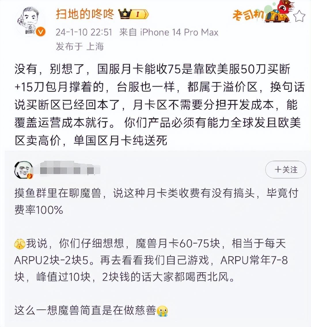 對此,前網之易CEO表示,魔獸國服曾經之所以能做到純月卡付費,主要是因爲歐美玩家的高價月卡+DLC付費,給國服玩家分擔了營收壓力。在當時,暴雪的發展戰略是擴展全球市場,因此非研發地區無需分擔開發成本,國服玩家也不必要爲了新DLC進行付費。