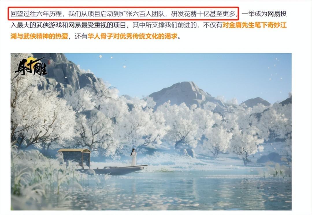 同時,項目組還表示該作研發時間長達六年,研發團隊超六百人,研發花費超十億之多,是網易投入最大的武俠遊戲和網易最受重視的項目。