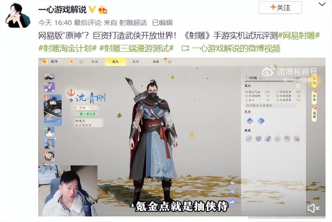 就玩家目前的體驗來看,該遊戲比較像是網易版“原神”,同樣有抽角色+開放世界探索的設定,但相較於原神射鵰的養成體系更偏MMO一些,副本設計也都是圍繞着武俠小說的設定進行。