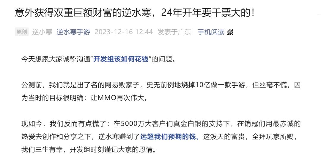 這不,活動還沒開始,逆水寒就誇下海口,表示自己「已經賺到了遠超預期的錢」,將在今年發起「百日倒貼」活動。