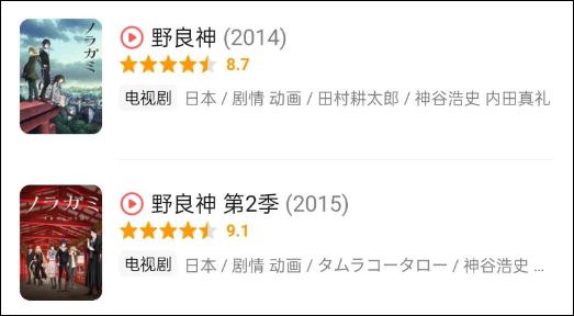 《野良神》推出過兩季動畫,在豆瓣以及Bangumi上評價都相當不錯,而它的漫畫看的人雖然不多,可在Bangumi上也有一個還算不錯的 7.5 分。