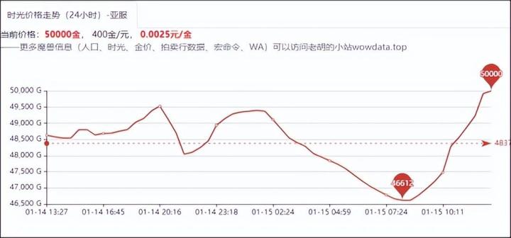亞服的時光徽章在年前達到3萬5熔斷停擺了兩個星期,後來在1月9日暴雪進行了解禁操作,隨後就一飛沖天。雖然有過幾天的大幅震盪,但是最終還是繼續上漲,目前漲到5萬金幣又漲不動了,再次觸及熔斷線。 看來是亞服的金幣是止不住跌了,版本末期和國服消息的雙重加持之下,金價早已經崩盤。