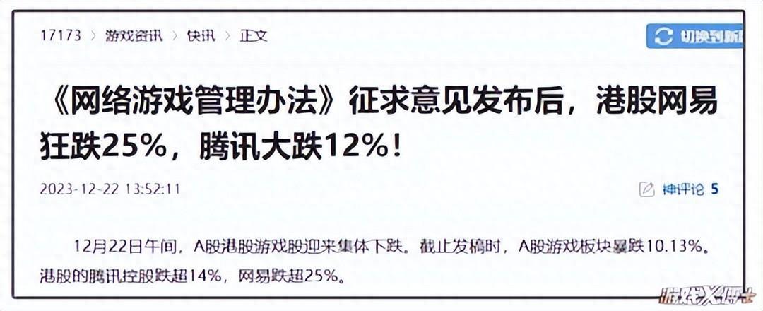 半個月前,版署的網遊管理辦法草案發布後,遊戲行業啪得一聲,躺平了。騰訊網易市值蒸發了超過4600億,直接跌沒了一個小米。