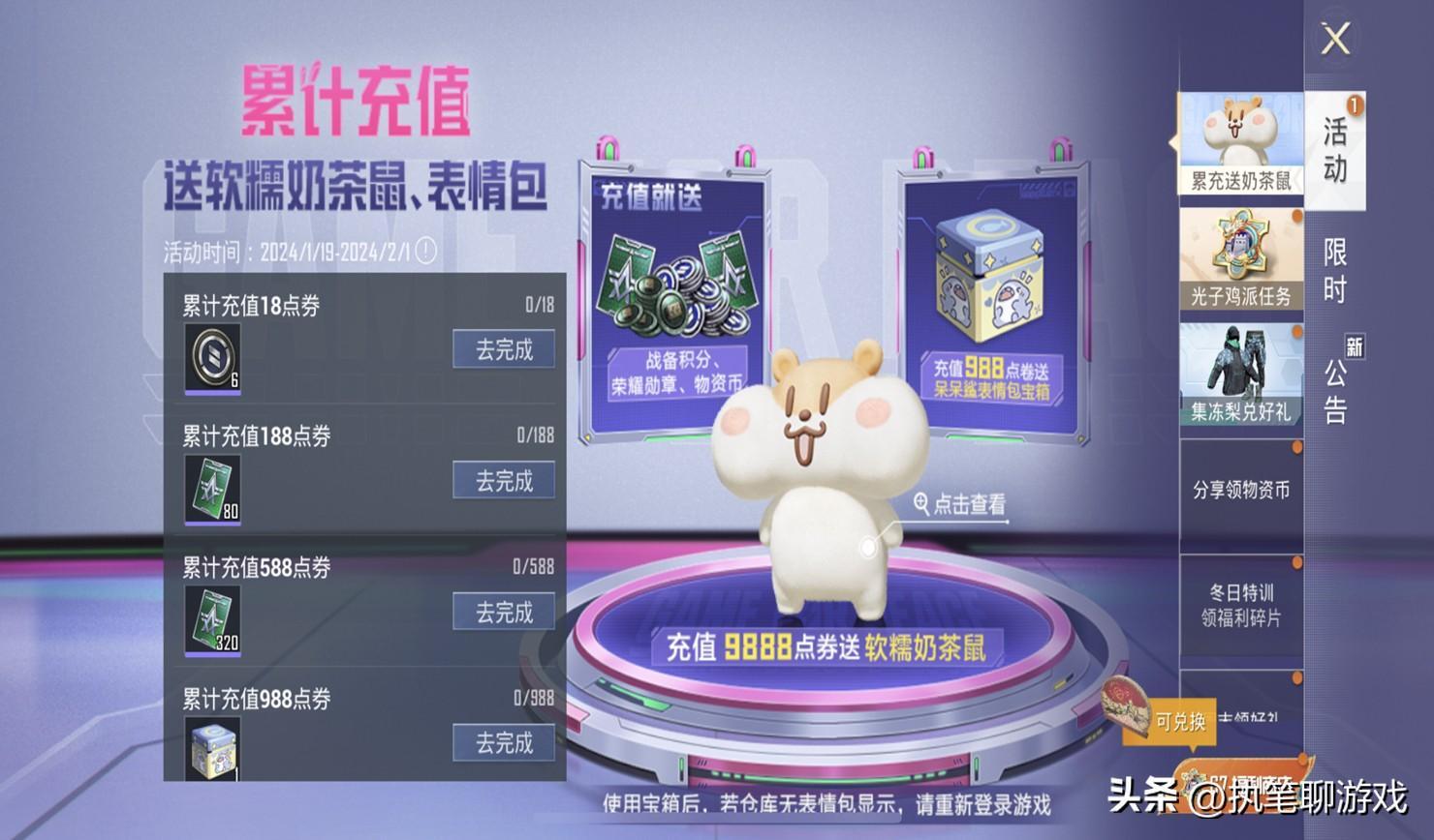 其中的累充終極獎勵“暖糯奶茶鼠”可以說是相當可愛,在寵物中的顏值可以算是前三了。可惜,光子至今都沒有將PubgM的寵物系統還原更新,《和平精英》的寵物更像是“擺設”,只能在一小部分場景下出現,也算是遺憾吧。