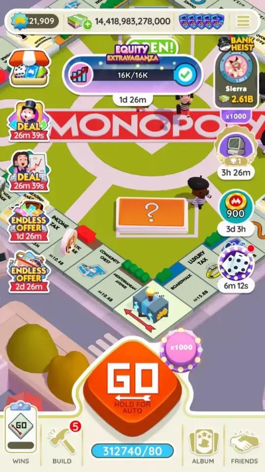 作爲經典IP的改編續作之一,《MONOPOLY GO!》在遊戲玩法上,保留了“大富翁”系列的基本內核,就是在棋盤之上,以擲骰子的方式推動地產經濟發展的進程。骰子的點數大小,對應玩家在棋盤上前進的格子數量,隨機的骰子點數和棋盤格上的不同事件,將直接導致玩家經濟實力的升降。