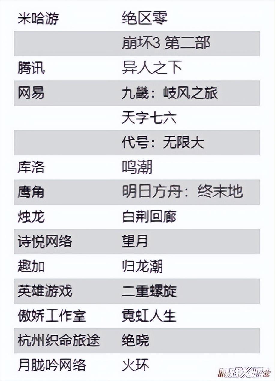 如果不看名單,很多玩家都不知道,原來去年還上了這麼多二遊。
