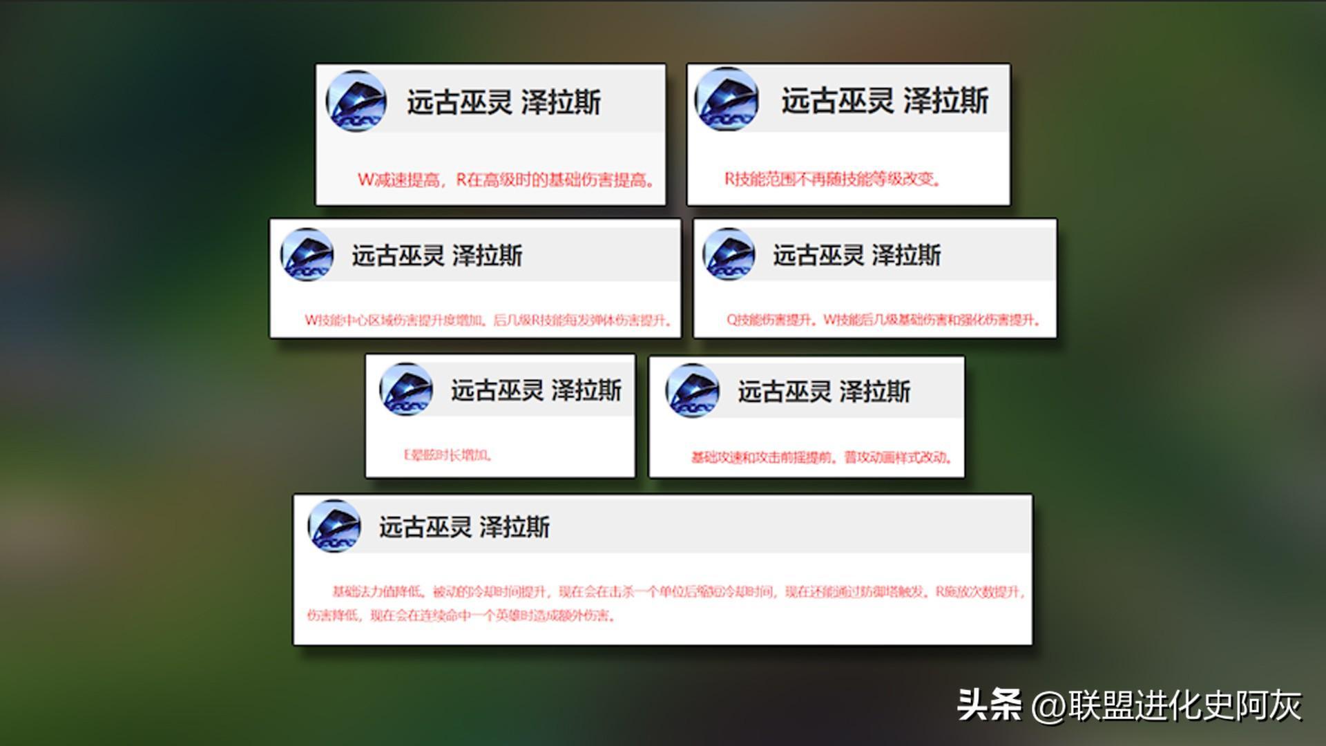 在這之後,澤拉斯的人生一路開掛,七年半時間裏(S6中期至今),共計加強七個版本,五尿差點變七尿(最後折中六尿),力度相當恐怖,而削弱僅有一次,且幾乎可以忽略不計,已經是純純數值怪了。