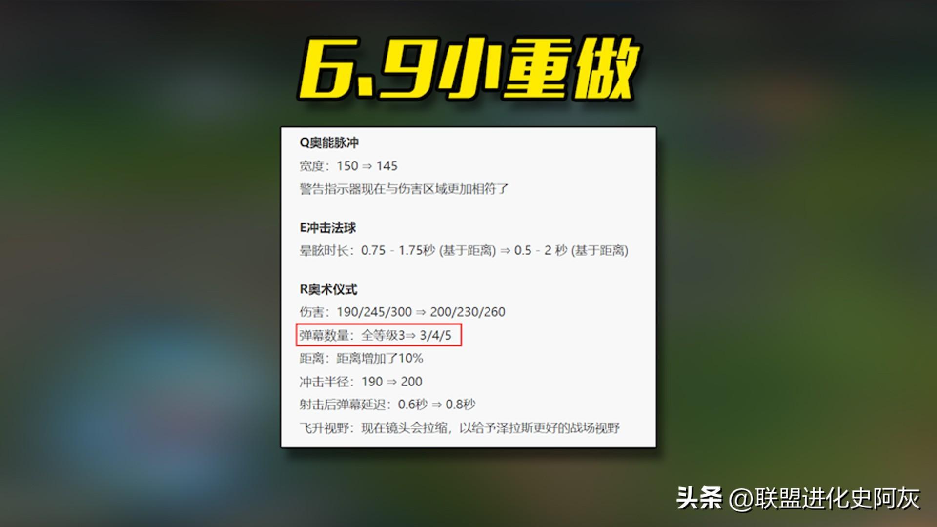 對於這種沒有機制,全是數值的英雄,設計師的改動方式,也是十分簡單粗暴,你說大招難中是不是?那我就給你加兩發,五泡下去能把ADC活活澆死。