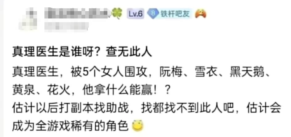 一方面,真理醫生與此前的託帕、霍霍、銀枝類似,屬於天降角色,在主線劇情中,並沒有過多鋪墊,人氣天然受限。另一方面,真理卡池的時間節點,正好是前有阮•梅,後有黑天鵝,夾在兩大人氣角色之間,大家都覺得,真理很有可能要查無此人了。