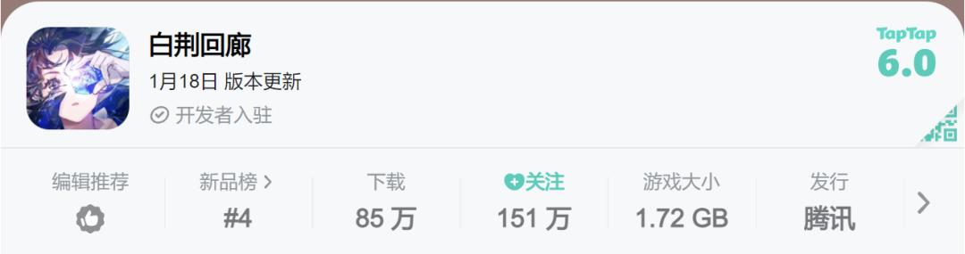 1月12日,騰訊2024開年第一款手遊《白荊迴廊》(以下簡稱“白荊”)正式上線。