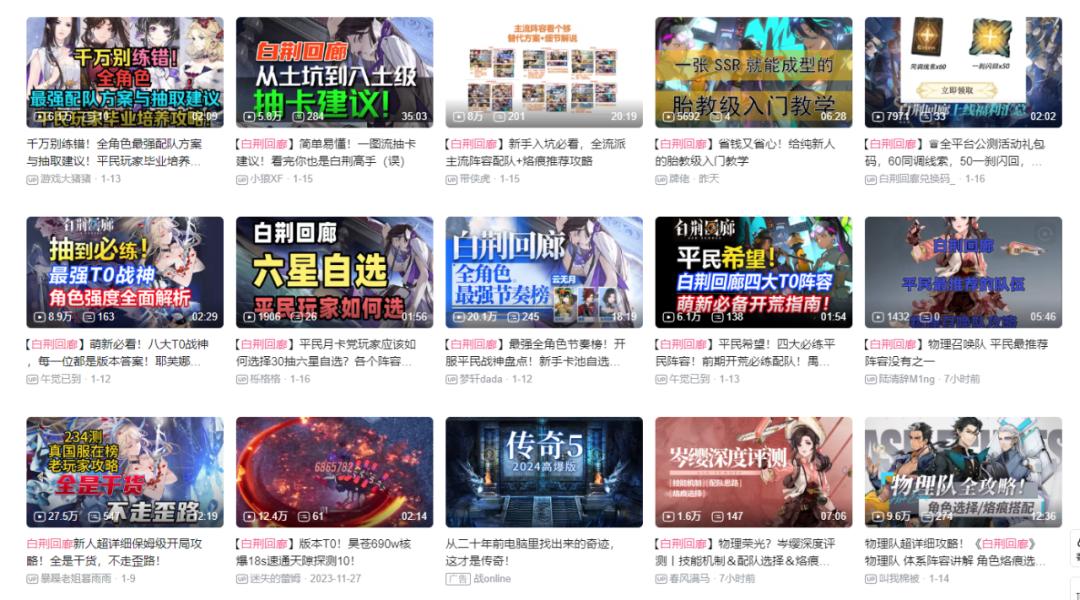 遊戲上線前的幾天,每當我打開B站,幾乎清一色全是白荊的視頻內容,核心內容也大差不差,基本都是參加過內測的UP主講解如何選角色配隊、講解遊戲的屬性反應體系。看一圈下來,沒有一個人能說到點子上。