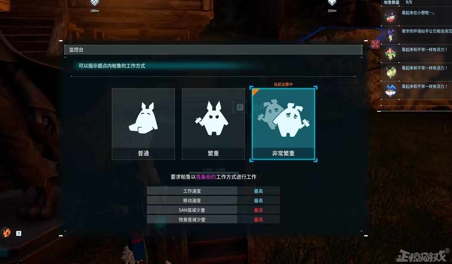 另外,遊戲還十分貼心地給到了玩家自主設計工作強度的檢察臺,好讓你可以像現實生活的老闆一樣,讓手底下的帕魯員工過上天天996的幸福生活。