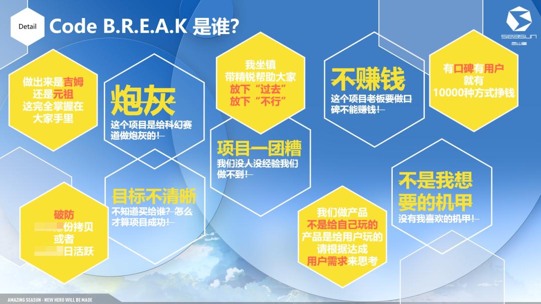 所以我進去之後,第一件事就是寫了這個PPT,召集了項目全部核心開了個會,把項目當前現狀和問題都很赤裸暴露出來。比如說遊戲肯定是以PVP爲玩法核心,再比如說機甲建模的製作規範一定要高,這也是我爲什麼要放棄移動端平臺,以PC+主機平臺標準重新搭建工業化管線。
