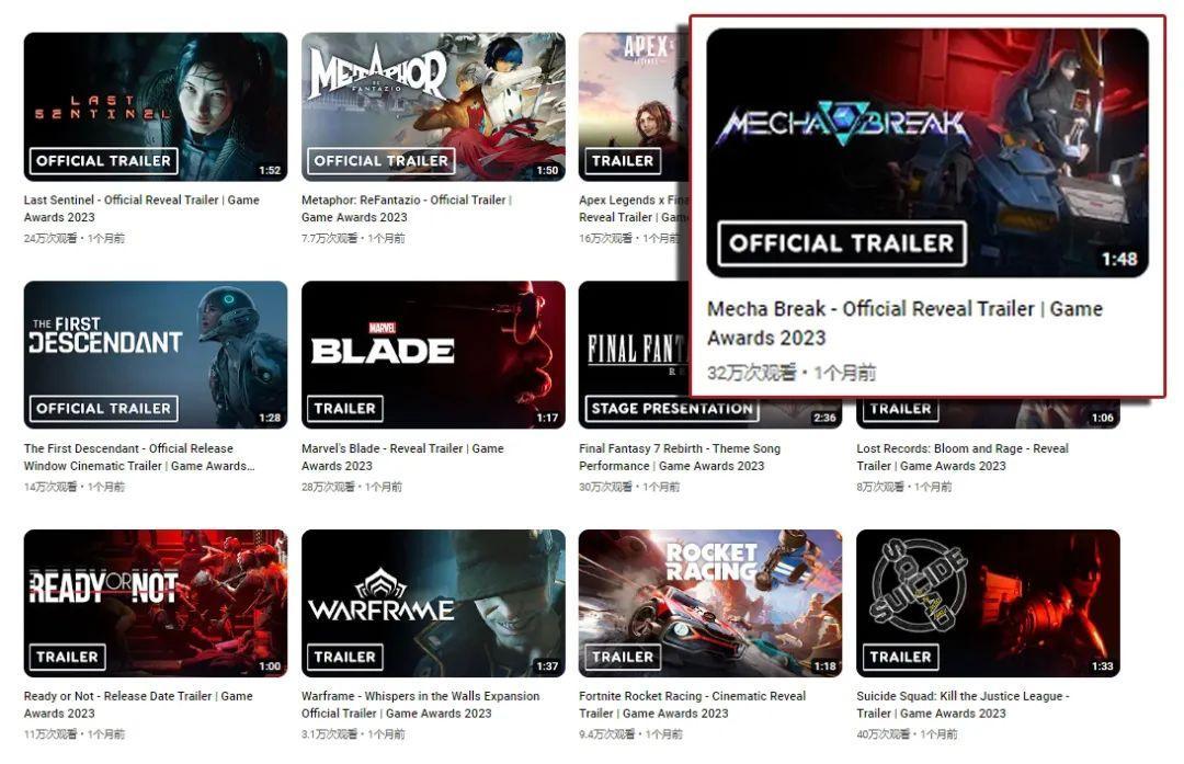 項目的熱度也超出了許多人的預期。遊戲於2023年年底TGA(The Game Award)首曝,頒獎期間的首曝播放量僅次於《黑神話:悟空》,超過了《漫威蜘蛛俠2》在內的一衆3A遊戲。