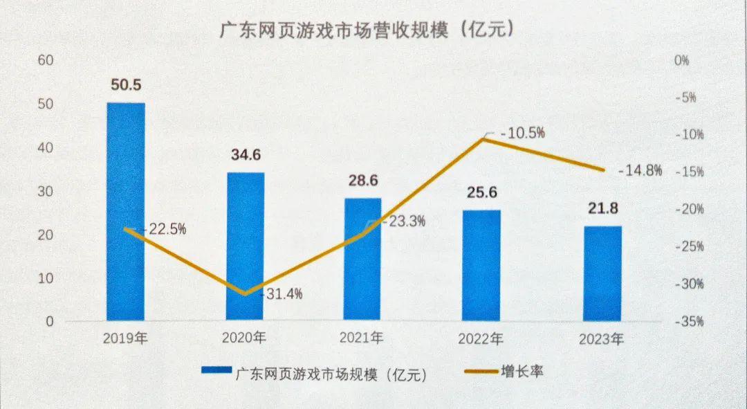 廣東網頁遊戲市場規模保持下滑態勢,今年再次下滑約14.8%至21.8億元,約佔全國網頁遊戲營收規模的45.9%。