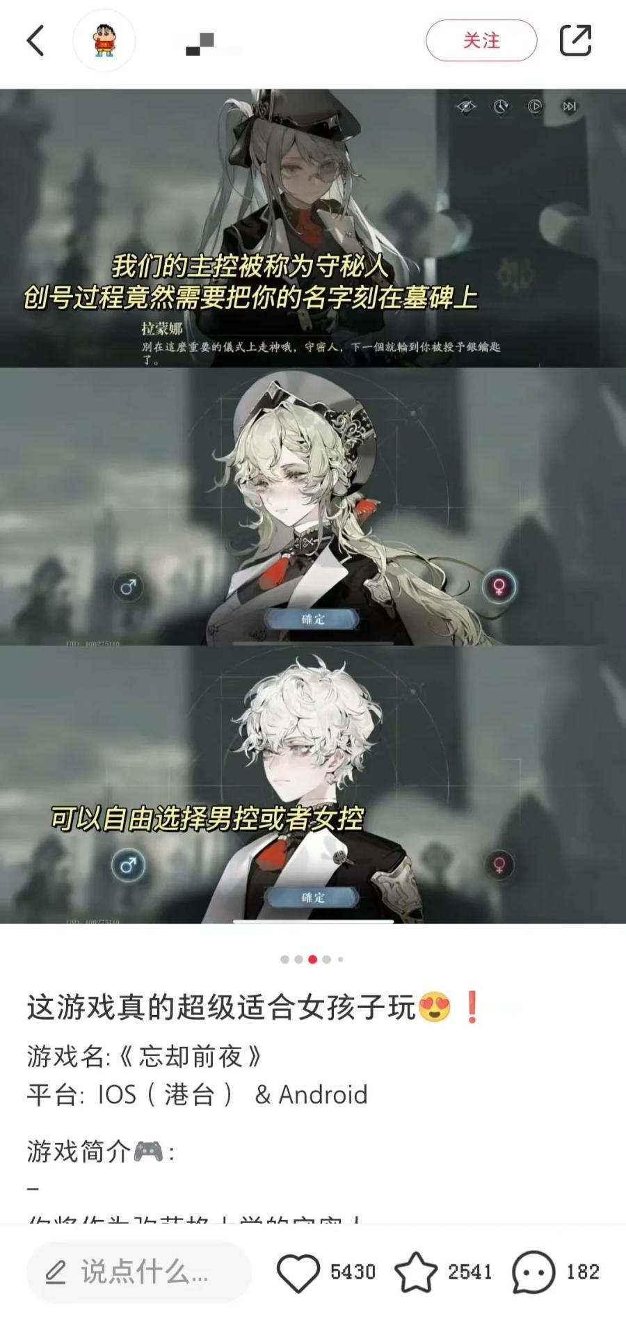 「但是小紅書都是反過來的——它類似一個搜索引擎,用戶大概率是已經準備好要做下一步決定,因爲對某件事感興趣,搜索瀏覽之後纔來點到我的筆記,進而關注我。這些粉絲都是實打實具有遊戲屬性或者標籤的。也可以說小紅書博主——不只是遊戲區,其他區也一樣。即使粉絲量級和其他平臺比較相對少一些,但是粉絲的粘性和某些標籤化特性很高。」她還大致估算了一個比例:小紅書博主的粉絲量,與某平臺博主粉絲量之間「含金量」的比例大概是1:10,也就是說小紅書博主能做到5萬粉,大概就相當於某平臺50萬粉博主的效果了。