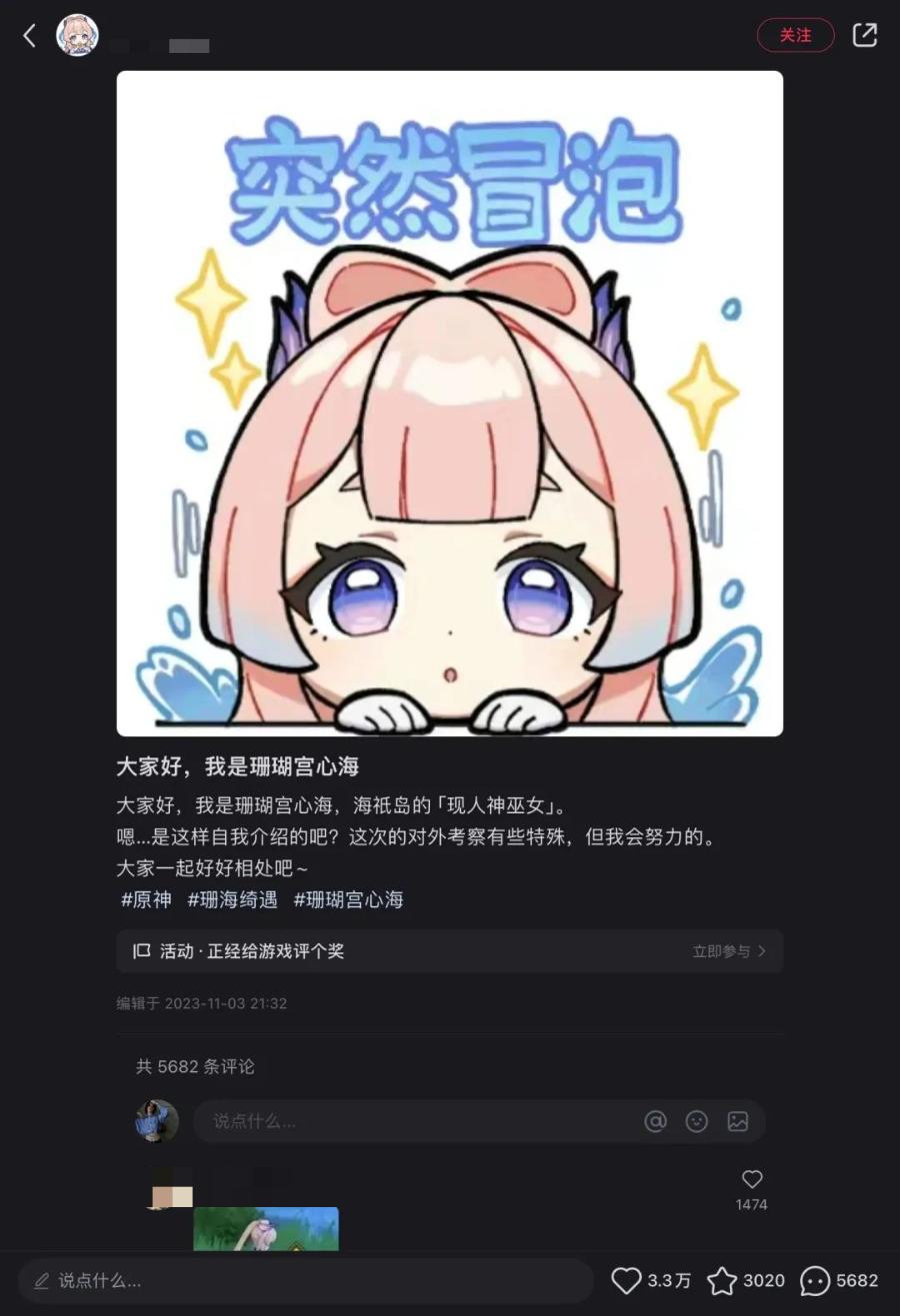 其二是在版更期就開始圍繞角色種草,一步步把角色推向熱門爆款。前期種玩法,針對原神的核心玩家,預告角色上線時間、透露強度和細節;中期種興趣,針對二次元玩家,在生活場景上瞄準來投放;後期種潮流,針對泛遊戲用戶,結合「真人入駐小紅書」這樣的熱點事件,把勢頭推向年輕人的一種潮流上。